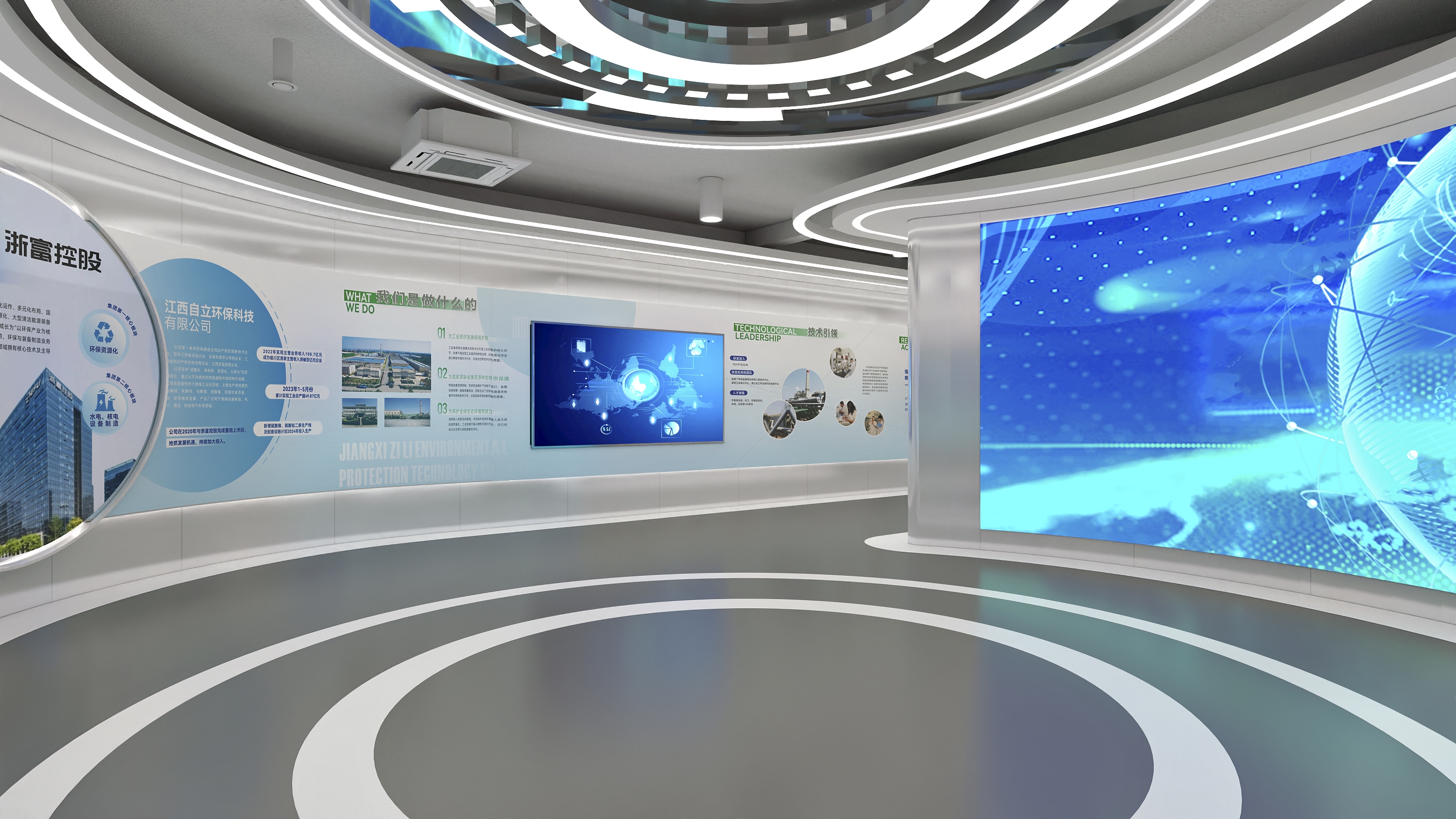 比如为某环保科技公司打造的150㎡产品展厅,从沟通到交付仅用了28天,且一次通过验收,客户当天就用展厅接待了3批客户,获得了一致好评。